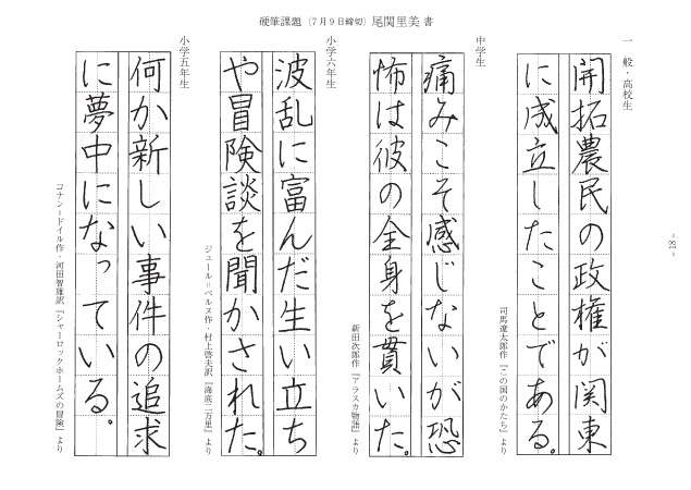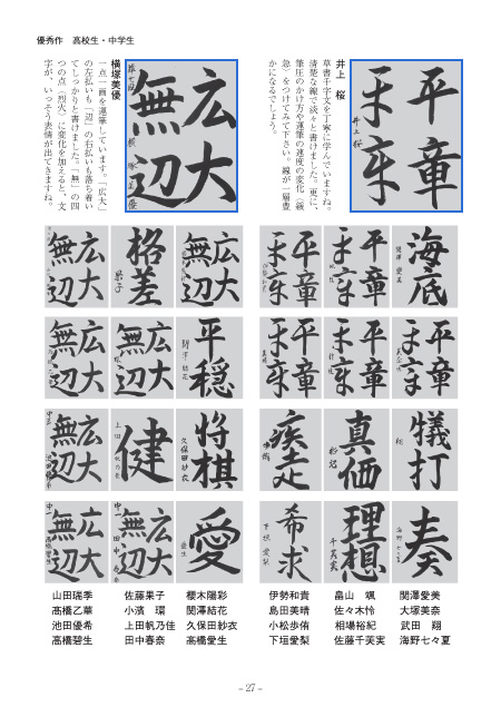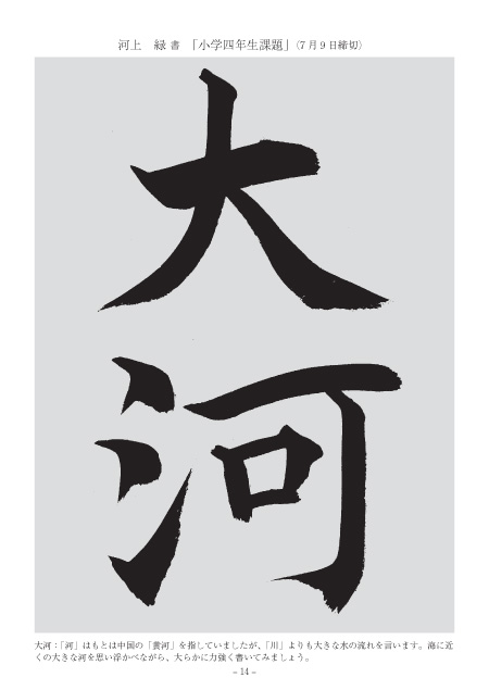 「広大」の左払いも「辺」の右払いも落ち着いてしっかりと書けました。