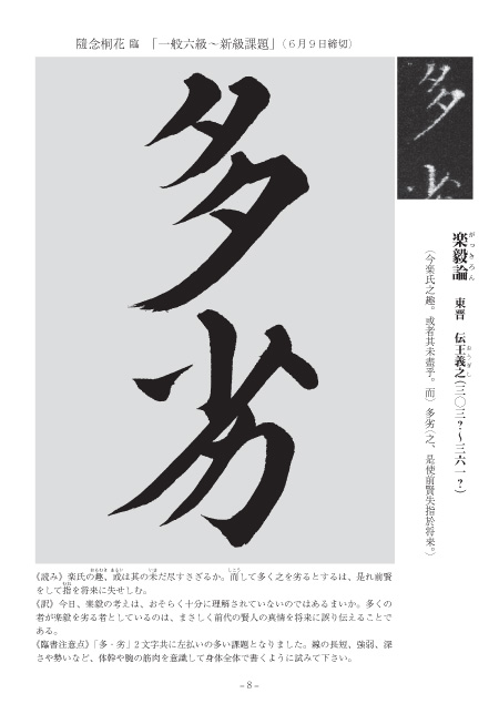 「被」は筆圧に変化をつけ、筆鋒を働 かせたリズムのある緊張感が漂っています。