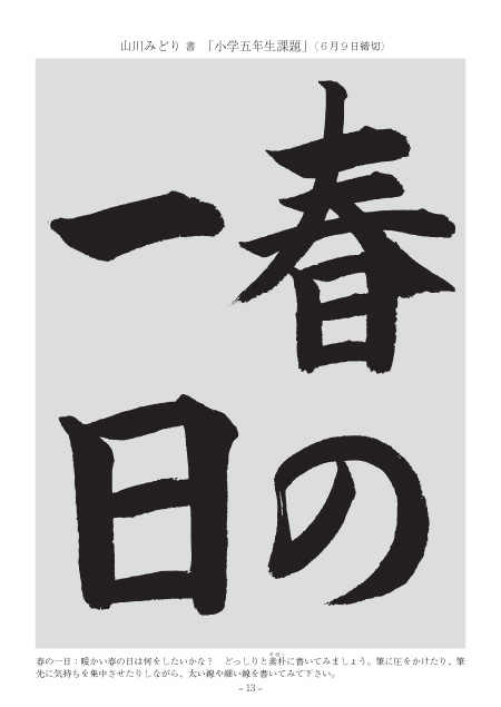 「春分」の左右の払い、「日」の縦の線など、深く半紙に食い込んだ強い線ですね。