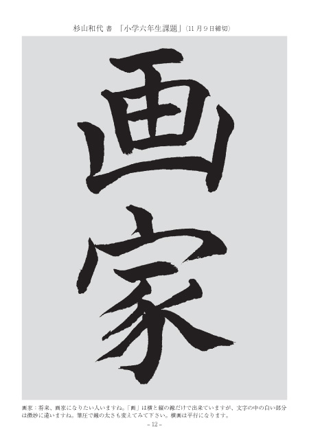 筆の入り方も払いの線も正しく、強く書けました。