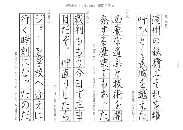筆を真っ直ぐに持ってきりっとした線で書けましたね。