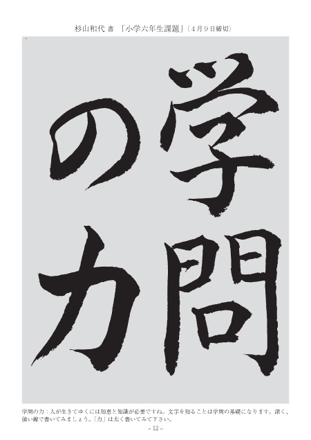「力」の二画目は勢いもあって素晴らしい。