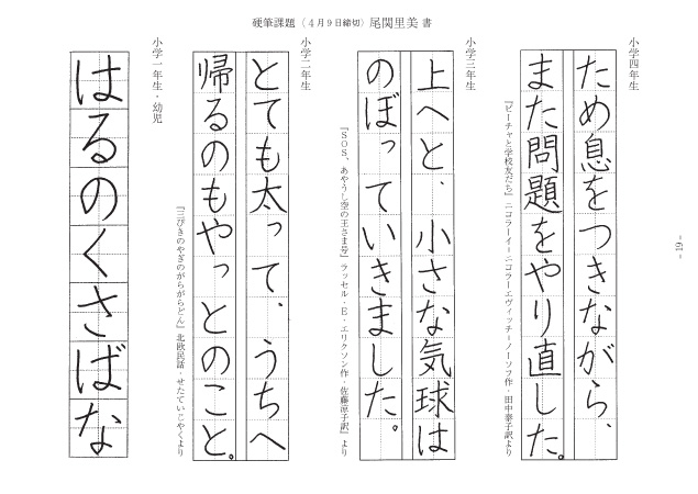 愛さんのやさしさと豊かな感性が伝わってくるお清書です。