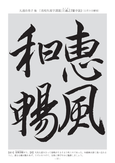 課題の文字にふさわしい力のこもった見事な清書ですね。