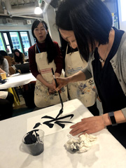 我が社も、この活動をサポートするため、様々なイベントが行われましたが、私はその中で、書道を伝えるイベントを主催しました。30名予定のイベントは、60名以上の希望者が集まり、日本の書道に興味がある人が多いことを感じました。 筆、硯、等々、英語で説明すること、また、30 名のイベントのために必要な用具を揃えるのは、思った以上に大変で、イベント開催日までには一か月ほどの準備がかかりました。