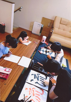 半紙や全紙も含めて一四五点ほとんどの作品の裏打ちをして仮巻きやパネルにはり込む作業に、半月あまりかかりました。墨をいっぱいつけて書いた小さなお子さんの作品は裏打ち泣かせで、うまくいかないこともしばしばです。でもじょうずに作品が伸びると、見違えるほど立派になるのが嬉しくて、気がつけばもう二十六年続けています。場所がら、多くの方々が見てくださり、「また今年も見に来たよ」とか「子どもの励みになる」というお声をたくさんいただきました。小中高と成長していく作品を見ると、「努力の積み重ね」「継続は力」と感じます。子どもはある時、ぐんとじょうずになります。子どもの「伸びる力」を信じて、これからも指導していきたいと思います。