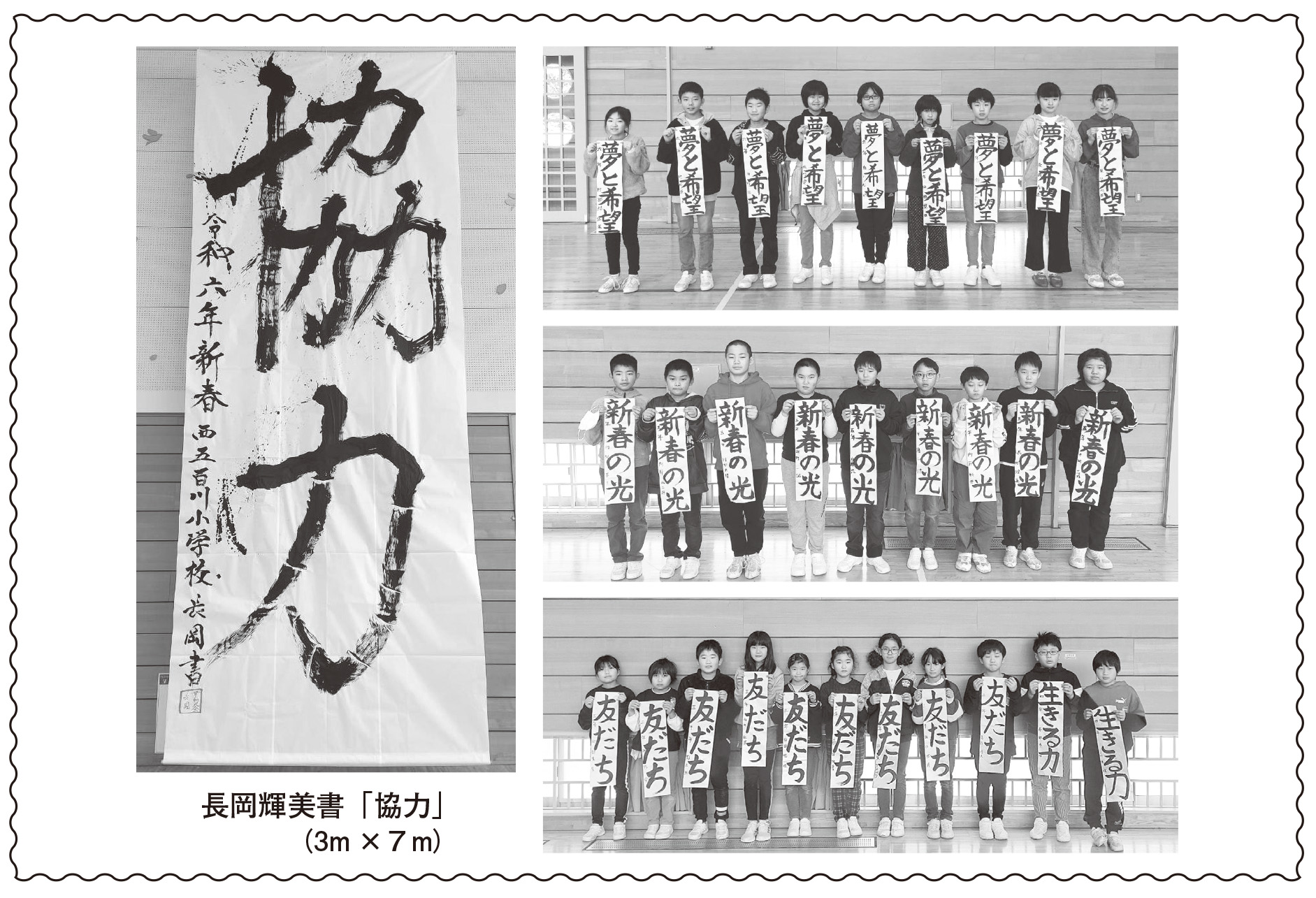 恒例の書き初め大会は、地元の西五百川小学校体育館で行われました。